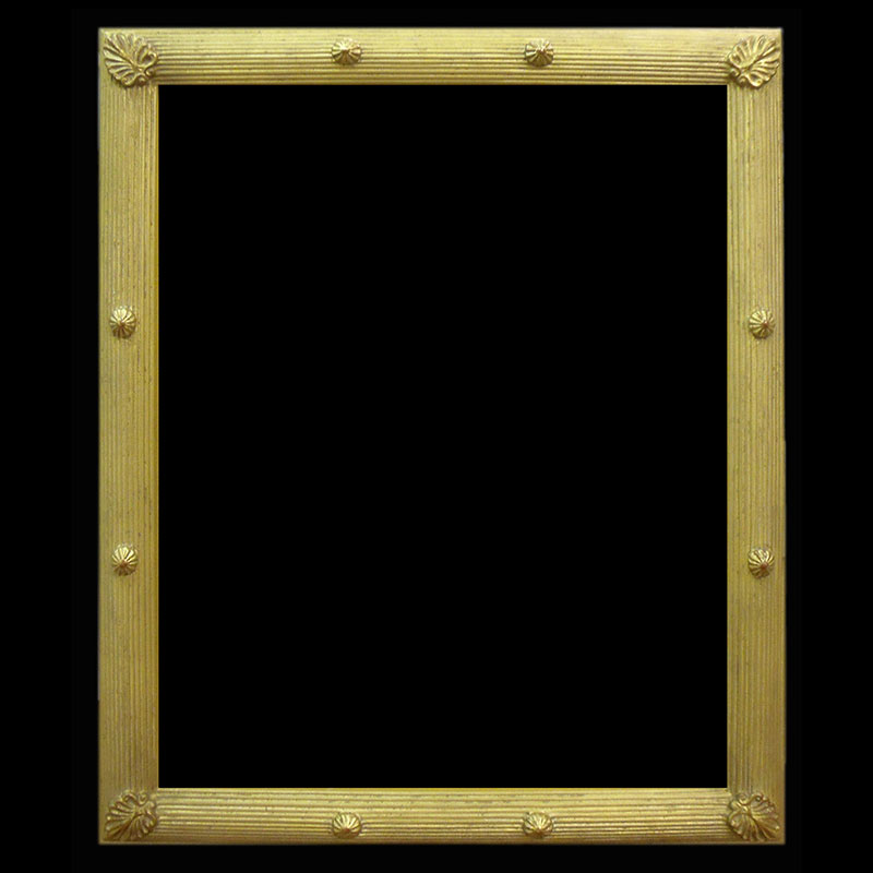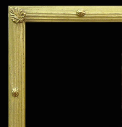 A Pre-Raphaelite gilt reeded frame with stylised palm leaves and roundel adornments.